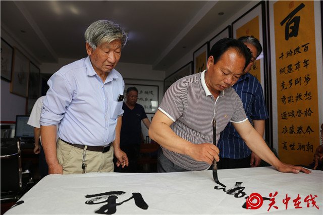 6月9日,中国书画家协会理事、陕西省书协会员、澄城县书协主席、渭南市书协理事申培民,中国榜书家协会会员、陕西省书协会员、澄城县榜书协会主席白武刚,中国美书家协会培训中心特聘画师、陕西省美协会员、澄城聚贤书画院院长白岩,中国书画家协会会员、陕西省书法协会会员、黄河书画院副院长、澄城县榜书协会副主席韩蔚禄等人作客中国书画在线进行书法交流。
