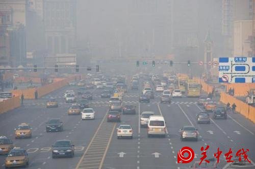 资料图:雾霾天气下的哈尔滨主城区。中新社记者 于琨 摄