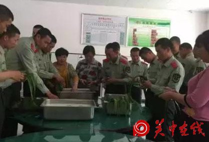 街道办为武警中队精心挑选了大米、红枣、粽叶,并同武警官兵们一起手把手包了粽子;年轻的武警战士们争先恐后的抢着学包粽子,个个兴高采烈、神采奕奕;双拥大妈、社区居民也都笑口开颜,竞展精湛的包粽手艺。大家边包边聊,战士刘勇心情激动的说:真是没有想到啊,离开家乡能与这么多亲人一起过端午包粽子吃,我们真是万分感动,深深的感受到粽粽相连,情意浓浓;也充分说明了军民一家人的革命光荣传统;非常感谢党和政府的亲切关怀,非常感谢双拥大妈和社区阿姨的热心关照,使我们在异地也感受到了家的温暖。双拥大妈高艳花语重心长的说:孩子们出门在外不容易,为了保家卫国,使我们过上太平的日子,你们也付出了心血和汗水,我们也要感谢你们啊,送你们粽子吃,我们感到无尚的光荣。最后,社区居民群众与武警战士共同围坐在一块,吃了甜蜜的粽子,共同度过了一个难忘而意义深远的端午节。